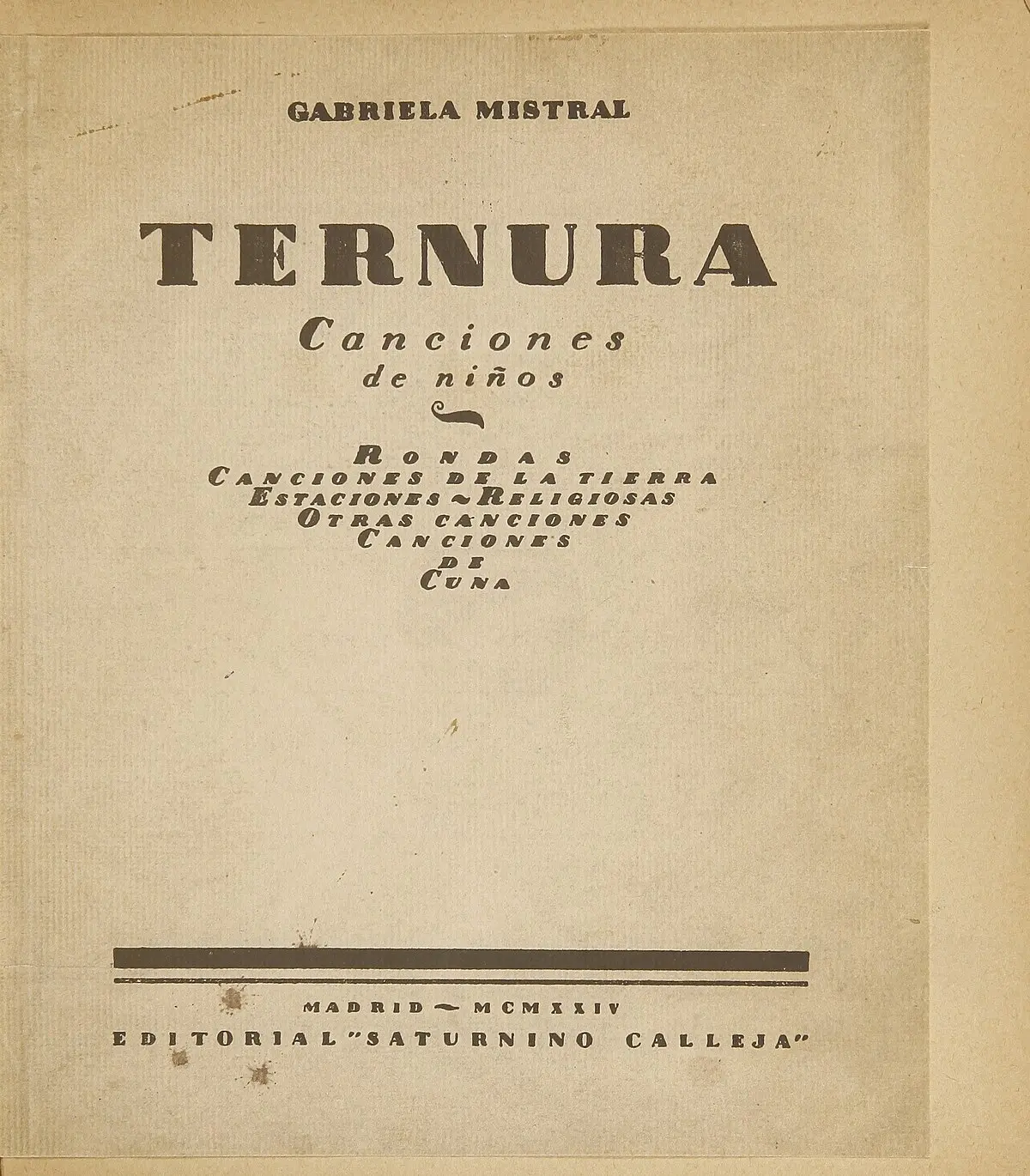 Sin embargo, la poeta no se quedó ahí. Más de dos décadas después, en 1945, publicó una segunda edición en Buenos Aires, a través de la Editorial Espasa-Calpe. Esta versión ampliada y reorganizada, con nuevas secciones y poemas, reveló una Ternura más madura y compleja, dirigida a un público más amplio, dejando atrás la etiqueta de "Canciones de niños". Esta nueva edición, con siete secciones, es la que generalmente se conoce y se reedita hasta nuestros días.