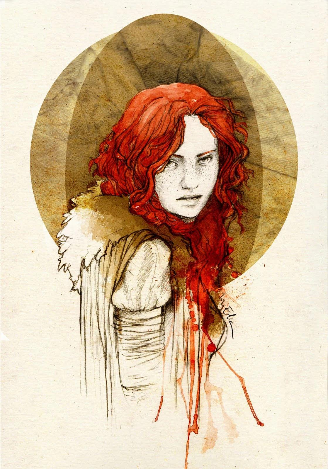 En las novelas de Canción de Hielo y Fuego, Ygritte es una mujer salvaje feroz, testaruda y experta arquera. Su belleza, aunque no convencional, es reconocida por Jon Nieve, quien la describe con rasgos poco comunes pero atractivos: rostro redondo, nariz respingona, dientes torcidos y pelo rojo fuego, símbolo de buena suerte para los salvajes.